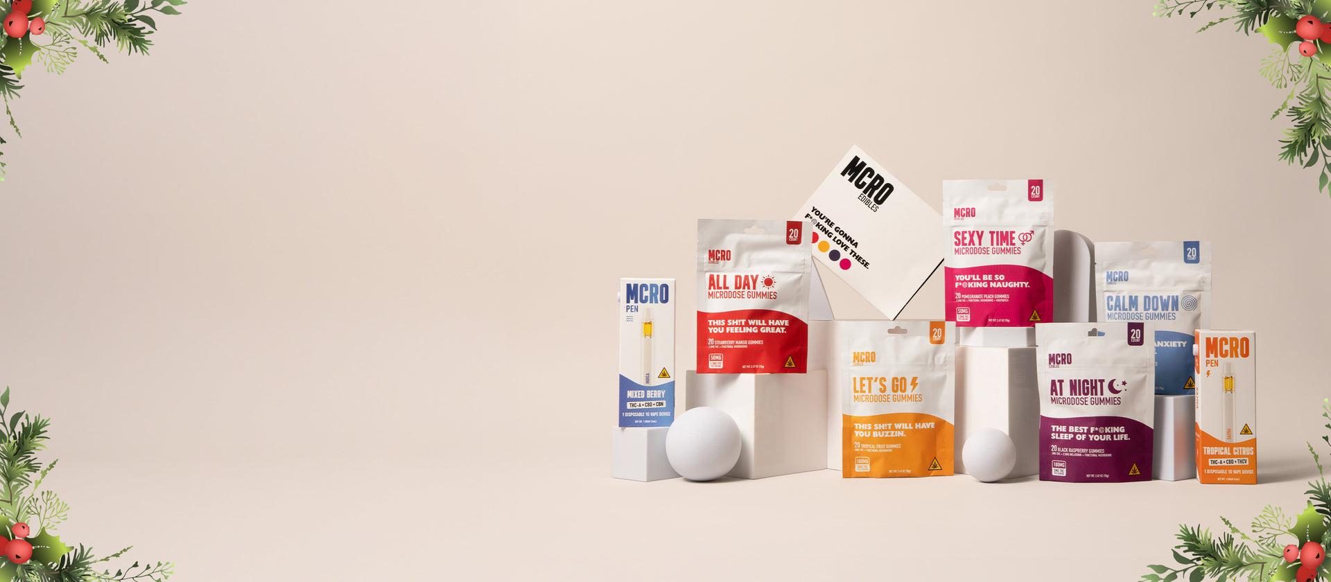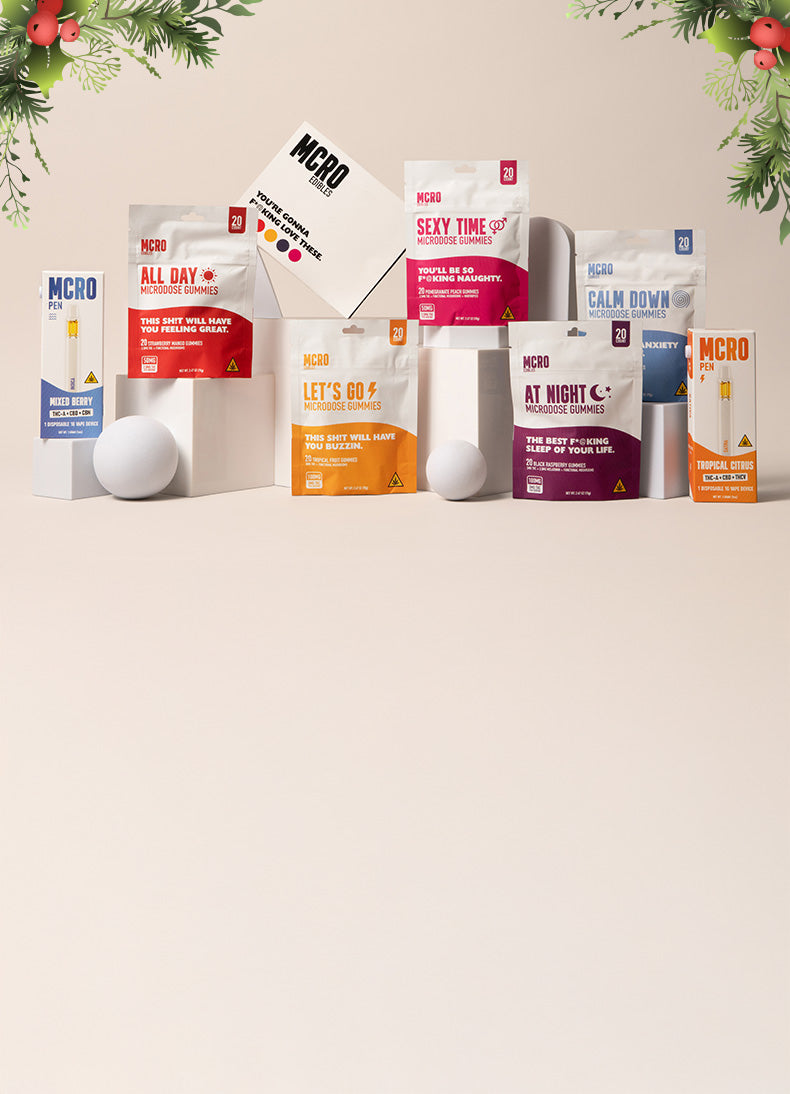 We know that finding the perfect, reliable edible experience to suit your needs is always difficult. Sometimes you want stress to f*@k off without feeling like youβre gonna pass out in 20 minutes.Β At MCRO Edibles, weβve crafted customizable, predictable experiences with a range of gummies that are perfect for taking your THC journey at your own pace. Whether itβs one gummy, two, or ten, MCRO allows you to tailor every morning, evening, and afternoon to your own needs.