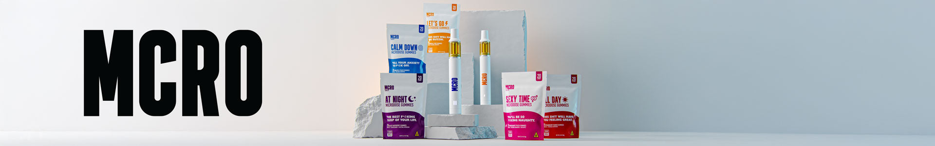 Shop the full MCRO line of microdose THC gummies and functional mushroom edibles. Energy, calm, sleep, and sex support. Safe, predictable, and delicious.